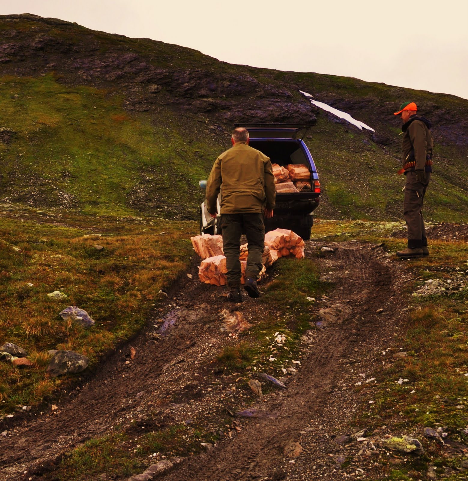 Ingen må fryse når kvelden senker seg og temperaturen gjør det samme.Ooi.. Ooiii grabbar, prøv å holde veden tørr, ikke slipp den ned i gjørmen!!!