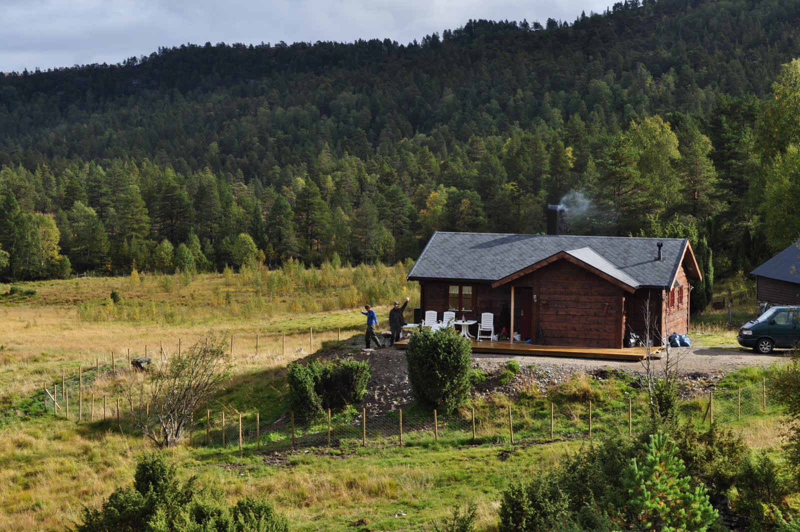 Over er meg og "Bukkejeger" på fjelltur sør i terrenget på Sande.
